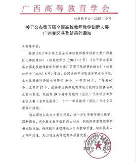 近日,第五届全国高校教师教学创新大赛广西赛区获奖名单揭晓,太阳成集团tyc151cc朱颖老师获新文科组三等奖,实现了太阳成集团tyc151cc在该赛事单项奖项中的突破。