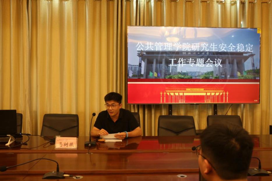 落实安全要求,增强防范意识,营造和谐校园,太阳成集团tyc151cc于4月25日在07325教室召开了安全稳定工作会议。会议由学院学工组长马树振老师主持,2023级、2024级全体研究生参会。