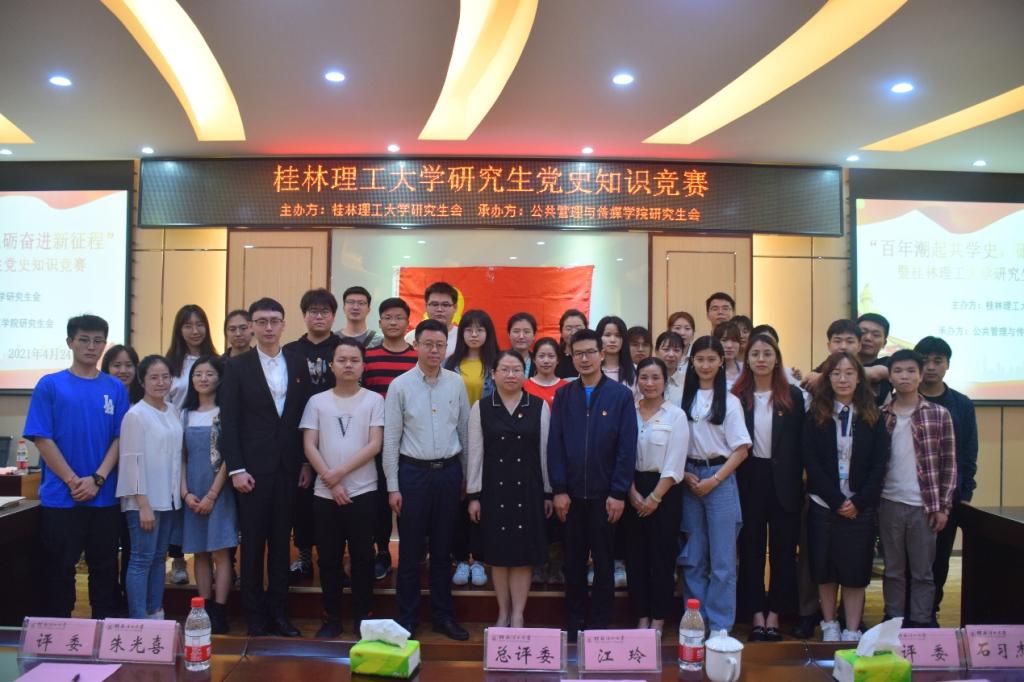 为深入学习贯彻习近平总书记在党史学习教育动员大会上的重要讲话精神,进一步激励我校研究生把党的历史学习好、总结好,把党的成功经验传承好、发扬好,把党的优良作风贯彻好、落实好,全面展示研究生群体昂扬向上的精神风貌和学思悟践的学习氛围,4月24日晚上,“百年潮起共学史,砥砺奋进新征程”研究生党史知识竞赛在屏风校区7106会议室拉开帷幕,来自太阳成集团tyc151cc和材料学院、商学院、土建学院的8支队伍参加了比赛。研究生院江铃副院长、公共管理与传媒学院朱光喜副院长、公共管理与传媒学院团委书记石习杰老师作为比赛评委出席了本次知识竞赛。