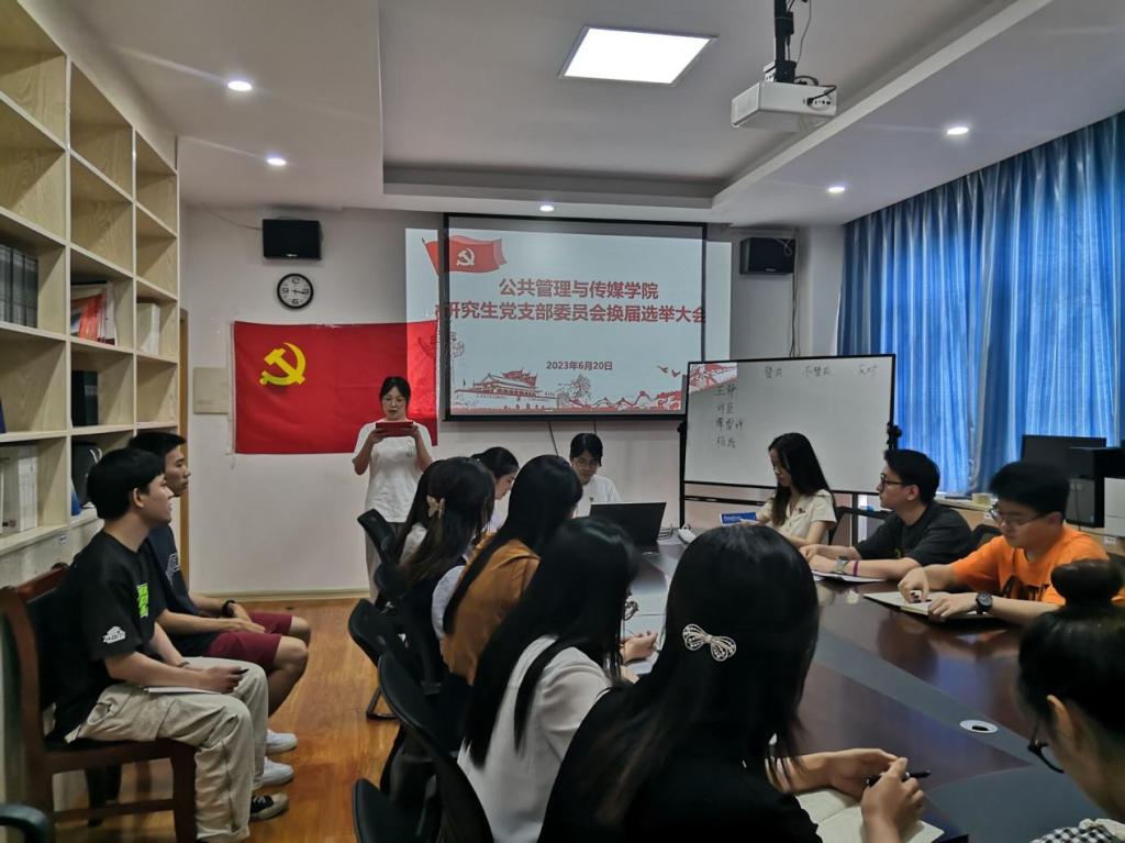 2023年6月20日下午,太阳成集团tyc151cc研究生党支部在屏风7703会议室召开换届选举大会,支部组织委员黄圣赟同志主持会议,支部书记王静同志及支部全体党员参加。