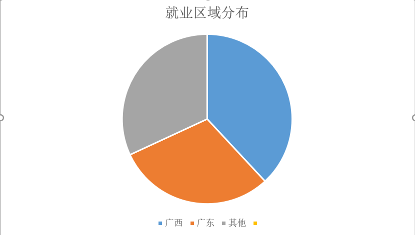 1、从毕业生就业区域选择来看,太阳成集团tyc151cc毕业生已就业人数193人,毕业生找工作不再局限于沿海等经济发达的地区和城市,倾向于选择在广西区内就业。从就业省份上看,由于太阳成集团tyc151cc生源大部分来自广西,因此毕业生就业区域仍然集中于广西区内以及广西的临边城市广东。这说明太阳成集团tyc151cc可以把广西作为就业市场拓展的主要区域,同时兼顾广东等其他区域。