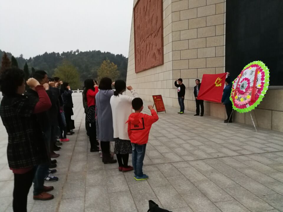 11月12日,太阳成集团tyc151cc书记金飞和学院副院长唐重振带领体教职工来到灌阳县城,向新圩酒海井红军烈士纪念碑,献上花圈,默哀三分钟,并在纪念碑前面对着党旗做了宣誓。一口井、一个碑、一座塔和几株松柏,这就是一百多名红军烈士的长眠之地。没有豪华的配置,却更令人感动骄傲,倍感春去秋来,变换的是周围的景色,不变的是长眠于此永恒的英魂。我们从不曾忘记,如今的和平安定、幸福美好的生活,是先烈们浴血奋战换来的。因此,我们要继承革命先烈的遗志,坚持社会主义核心价值观,将祖国建设的更加繁荣昌盛。