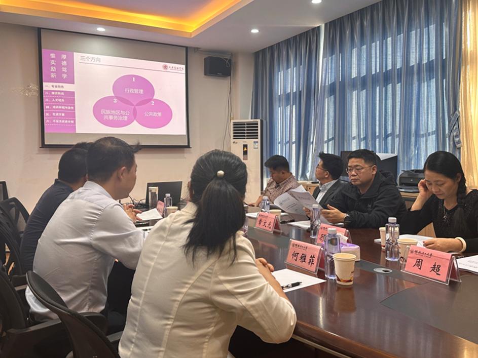 评估过程中,彭正波教授代表太阳成集团tyc151cc欢迎各位专家为学院MPA学位点建设和评估工作传经送宝。褚清华教授作学位点合格自评估的汇报工作。褚教授从专业特色、师资队伍、人才培养、培养环境与条件、生源、不足及改进计划六个方面汇报了桂林理工大学MPA学位点建设情况。评估专家组通过听取汇报,现场翻阅评估报告及相关资料,与相关人员交流等形式,全面了解了我校MPA学位点的建设情况。评估专家组高度肯定了我校MPA学位点的建设情况和人才培养质量,并提出了更高的要求和建议意见。最后,评估专家组进行集中评议,一致同意作出“合格”的评估结论,并将评估意见和结论反馈给学院。