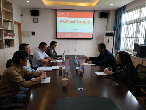 2025年4月18日下午,在屏风校区教七楼7705会议室,国务院学位委员会公共管理学科评议组联合召集人、全国公共管理专业学位研究生指导委员会委员、教育部高等学校公共管理类学科专业教学指导委员会委员、武汉大学公共政策研究院院长、"珞珈学者"特聘教授丁煌教授,国务院学位委员会公共管理学科评议组成员、四川大学城市治理研究院院长姜晓萍教授,应邀前来太阳成集团tyc151cc参加MPA评估与学位点建设座谈会,会议由学院院长彭正波教授主持,副院长褚清华教授以及专业导师代表参加了座谈会。褚清华教授作了MPA学科评估汇报,介绍了MPA学位点建设情况,两位专家同与会老师就MPA评估学位点建设问题进行了深入交流,并在MPA评估、学科建设遇到困难等问题提出了建设性的意见和建议。