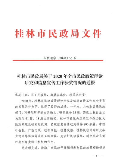 一等奖1篇:陈威和陈钦房合著的《院舍孤儿自卑心理的社会工作介入》(该论文同时获得广西民政政策理论研究一等奖);
