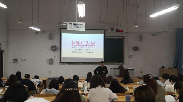 2021年10月29日下午,传播学教研室在雁山校区07120教室开展了《中外广告史》“课程思政”示范课教学研讨活动。本次课程由校级督导王殿华研究员主讲,授课对象为我校广告学专业2020级1、2班学生。传播学教研室主任陈远洋副教授、陈波博士等老师到场观摩。