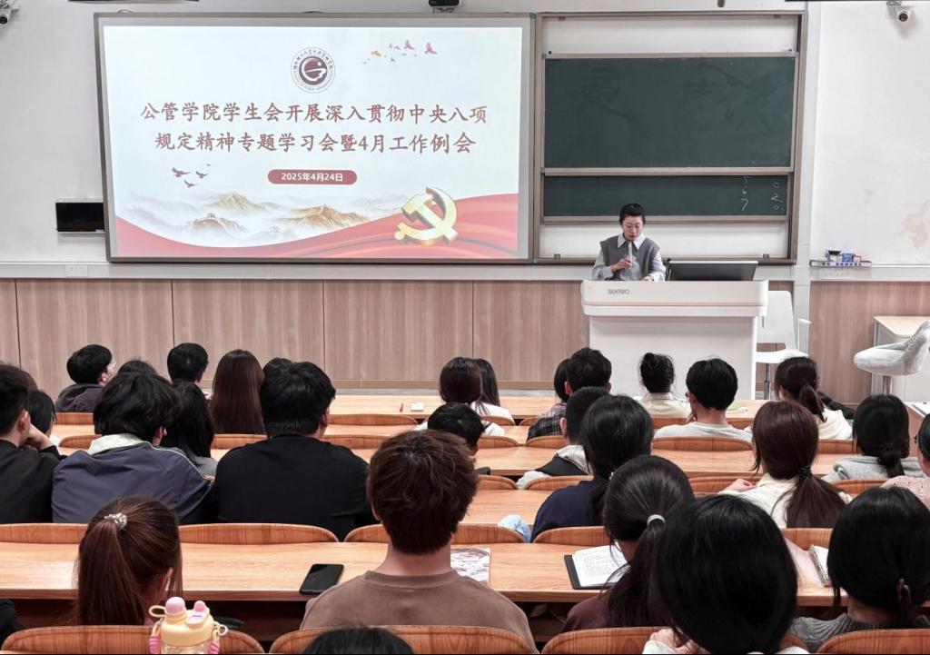 4月24日,学院学生会在雁山校区07120教室开展深入贯彻中央八项规定精神学习教育专题学习会暨4月工作例会。学院团委书记余东东出席会议并作专题辅导,学生会全体工作人员参加学习。