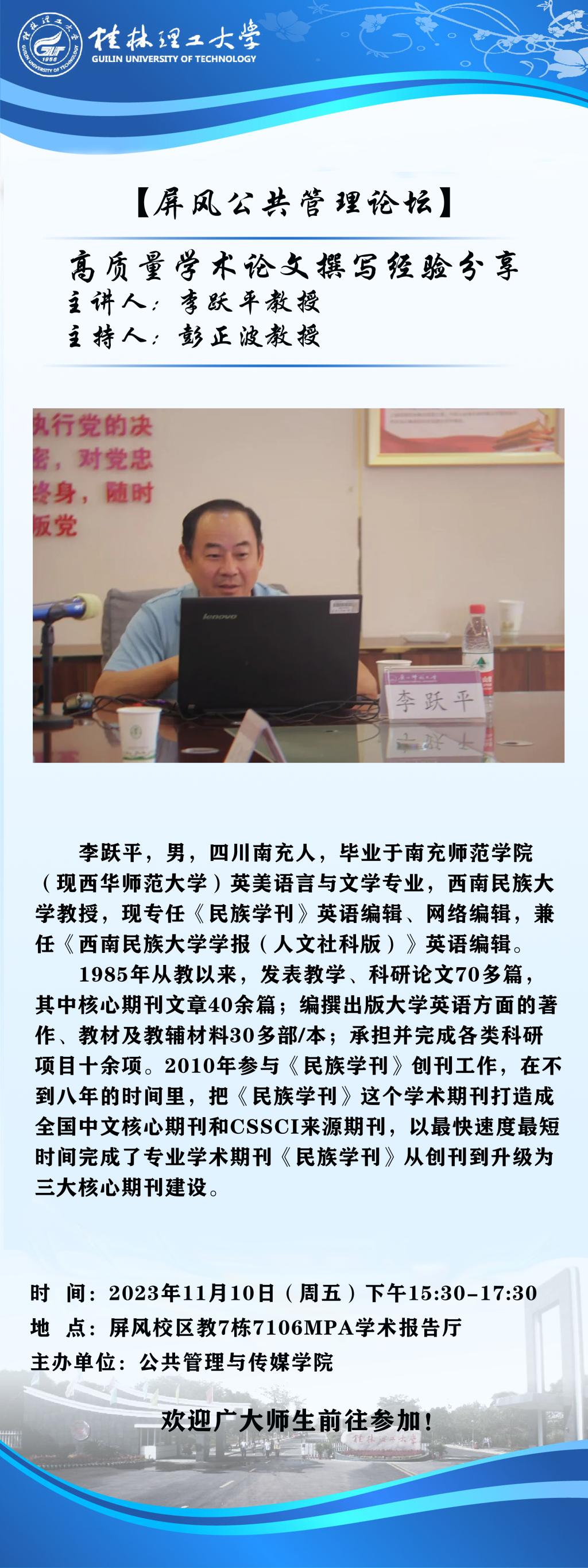 【屏风公共管理论坛】西南民族大学李跃平教授高质量学术论文撰写经验分享