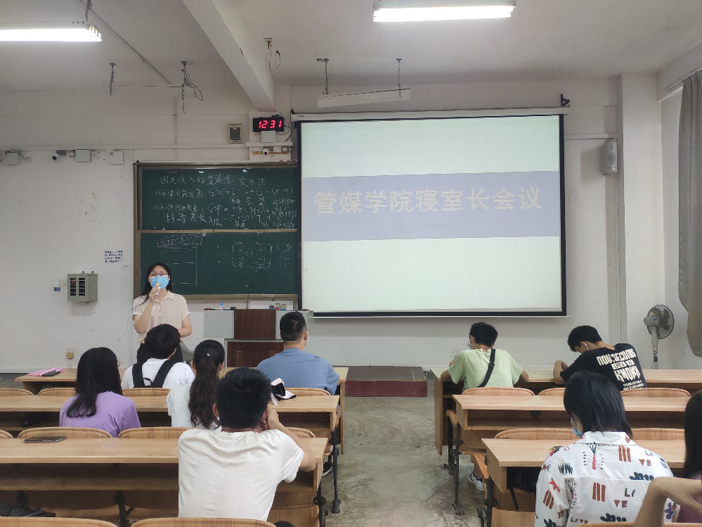 6月4日上午,公共管理与传媒学院在雁山校区06105教室召开全院宿舍长会议。参会人员有学院各年级寝室室长和各年级辅导员,会议由学工组长陈俊乐主持。