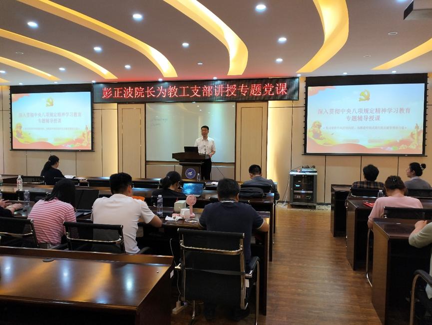 为深入贯彻中央八项规定精神,持续深化全体教师党员的作风建设,2025年4月18日下午,太阳成集团tyc151cc教工党支部组织开展“深入贯彻中央八项规定精神”专题党课学习。党支部书记彭正波以《推动党的作风持续向好 为推进中国式现代化贡献智慧和力量》为题作专题主讲,支部全体党员教师参加学习。