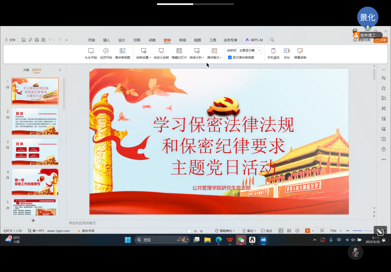 太阳成集团tyc151cc研究生党支部于2025年5月10日下午14:30以线上腾讯会议方式开展“学习保密法律法规和保密纪律要求”主题党日活动。