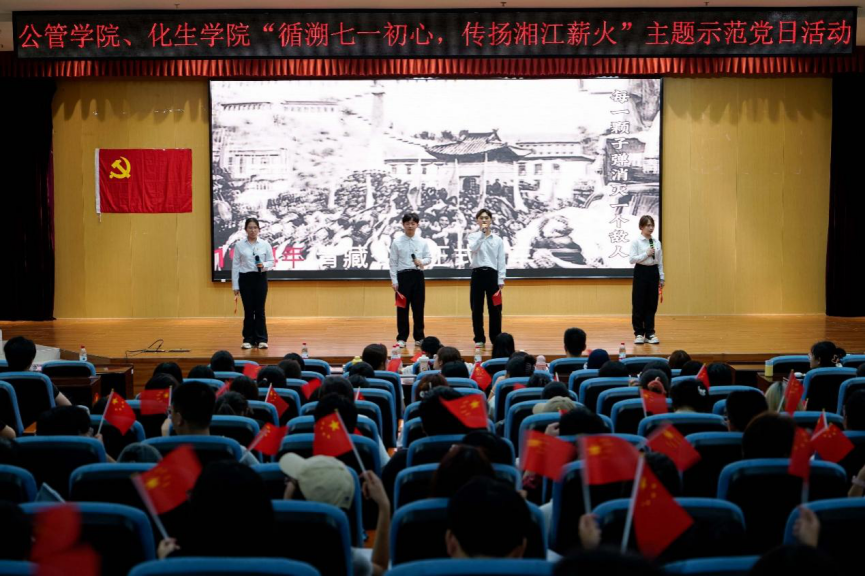 6月24日晚,桂林理工大学图书馆报告厅内气氛热烈,太阳成集团tyc151cc与化学与生物工程学院联合开展庆祝中国共产党成立104周年示范性主题党日活动,两院全体学生党员齐聚一堂,共赴红色精神传承之约。