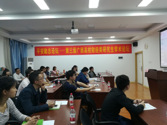 2017年4月9日晚7点,由广西大学主办,我校人文社会科学学院研究生会和管理学院研究生会承办的第三届广西高校财经类研究生学术论坛在屏风校区7701教室成功举行。本次学术论坛邀请到了我校人文社会科学学院向俊杰副教授作为点评嘉宾,广西师范大学经济管理学院、我校人文社会科学学院和管理学院全体研究生参加了此次活动。论坛由人文社会科学学院研究生会主席晁操主持。