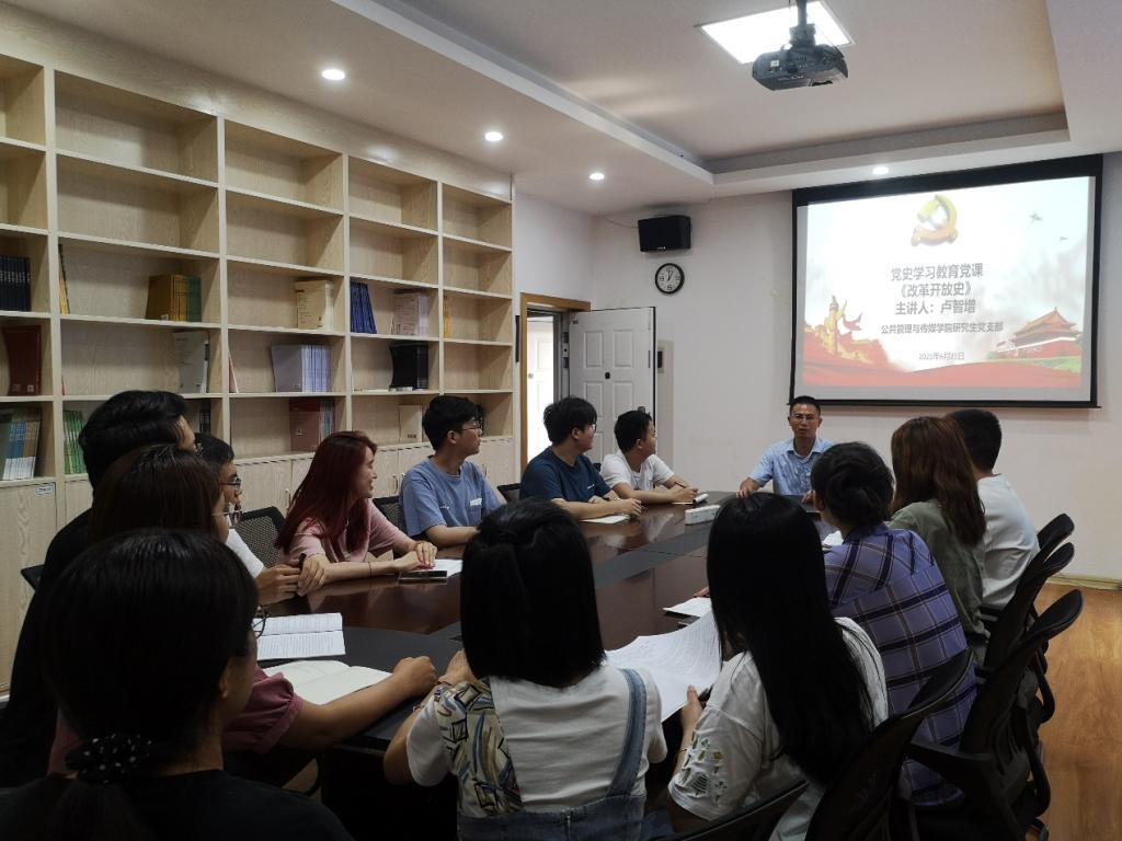 6月24日下午三点,公共管理与传媒学院研究生党支部在屏风校区教七楼7705会议室如期开展了党史学习教育党课,本次主讲人为卢智增老师,党课主题为《改革开放史》。支部全体党员同志、发展对象共同参加了此次党课学习。
